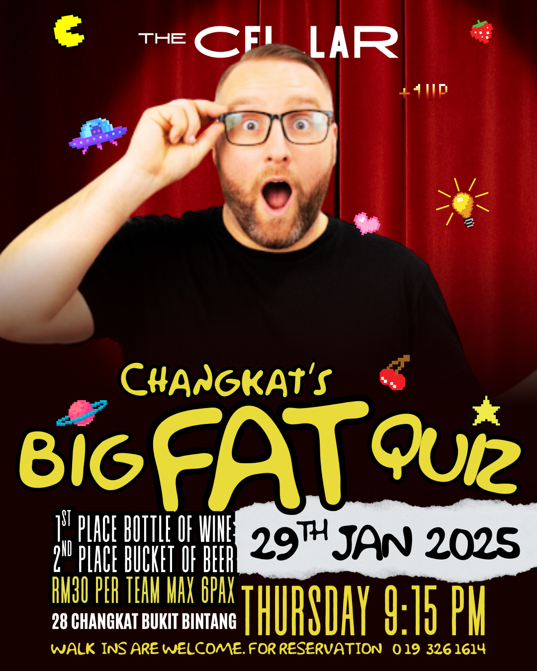 Gather your quizzard team of up to 6 people for The Big Fat Quiz at The Cellar. The stakes are high, the prizes are cold (beer/wine), and the questions are tricky.